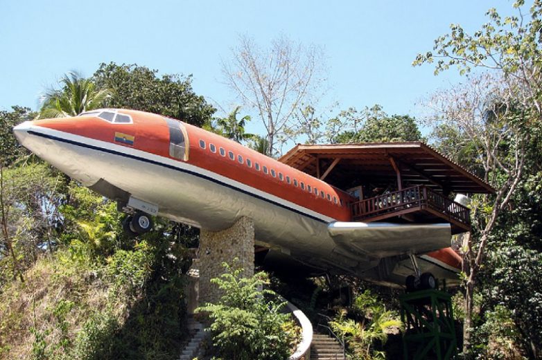 Списанный самолет со свалки аэропорта в Сан-Хосе дизайнеры перевезли в джунгли Коста-Рики и сделали из него мини-отель. Боинг 1965 года выпуска подняли на специально сконструированную платформу, расположенную в 50 метрах от земли. На борту самолета разместилось две спальни, две ванные комнаты, столовая зона и просторная терраса, оборудованная на крыле.