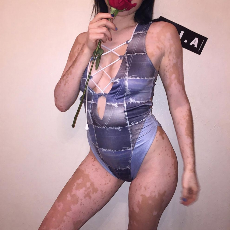 Смелые фотографии девушки с витилиго в нижнем белье вкупе с её красивой фигурой делают фото Эшли просто взрывными