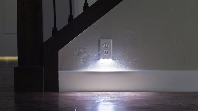 Прекрасное решение для тех, кому порой приходится искать розетку в темноте. Такая подсветка потребляет минимум электроэнергии и может быть использована в качестве ночника.