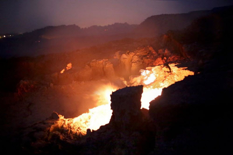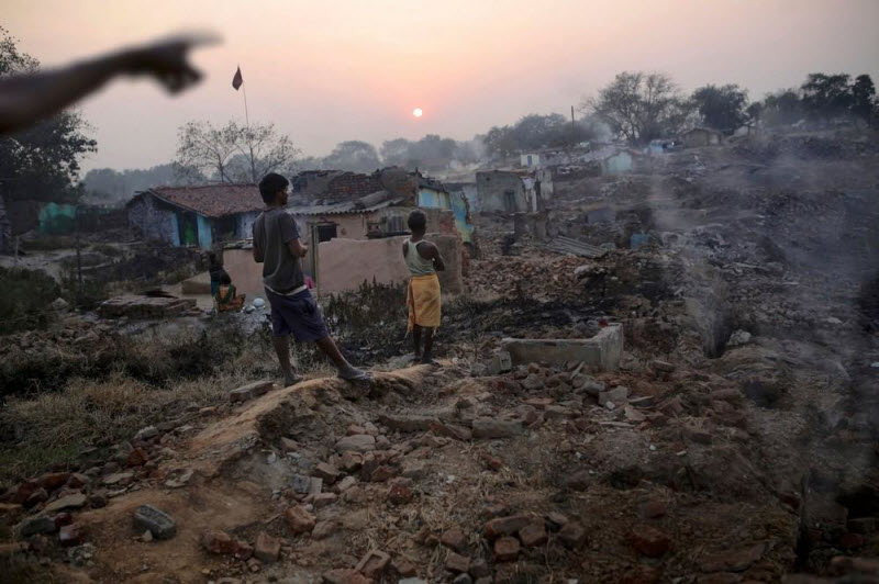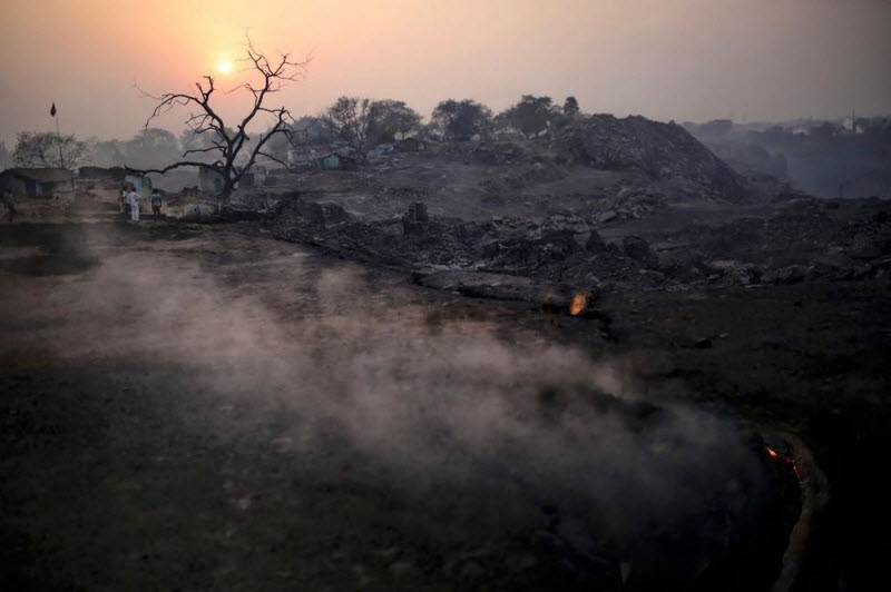 Джхариа находится в основании крупнейшего в Индии угольного пояса в северо-восточном штате Джаркханд. Район производит уголь высочайшего качества, который необходим для производства стали, а также термо-электростанций. Однако, подавляющее большинство карьеров, которые тянутся через эти земли, находятся на поверхности подземных пожаров, которые горят на протяжении более века. Ядовитые газы от горения отравляют все вокруг, больше всего от них страдают рабочие и местные жители.