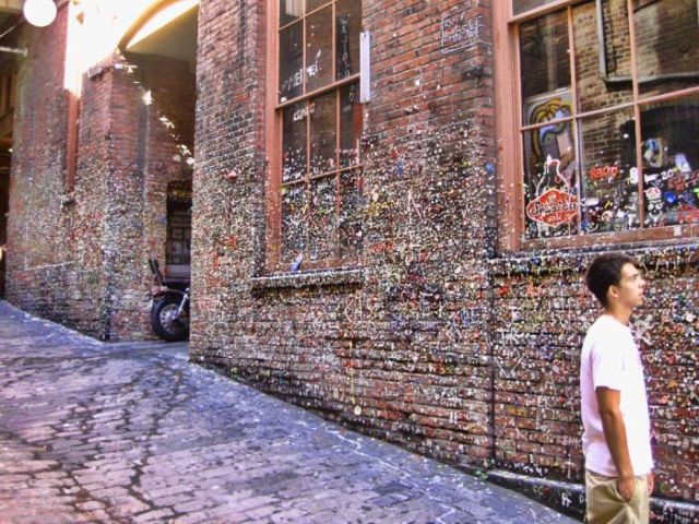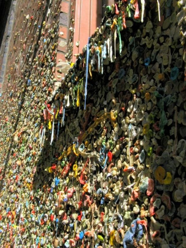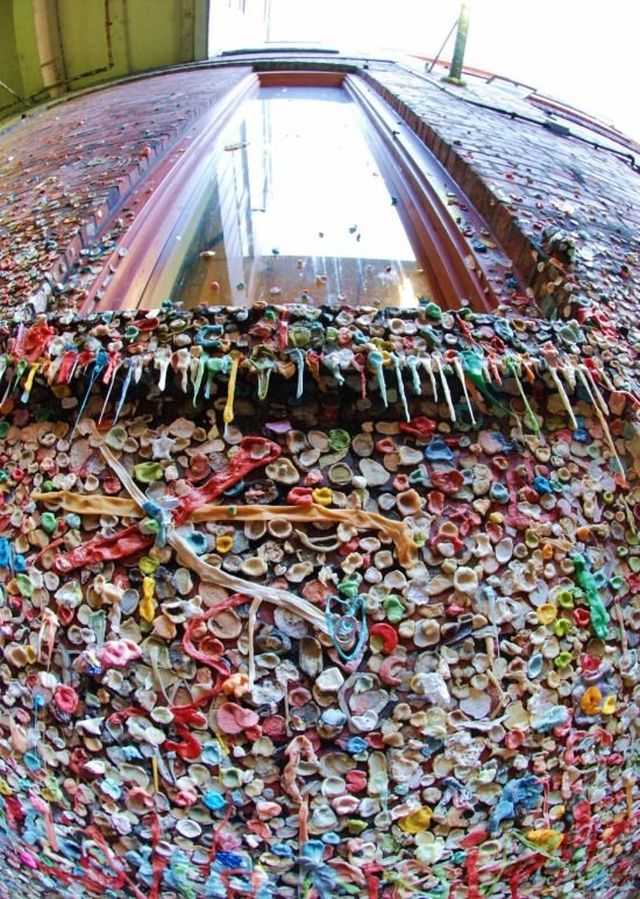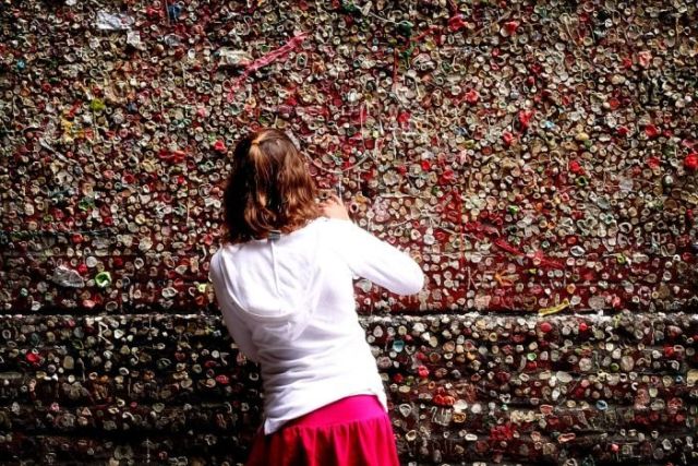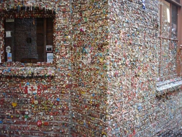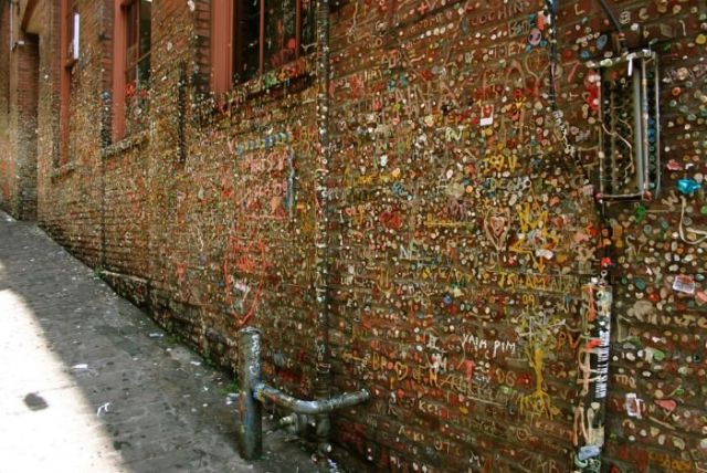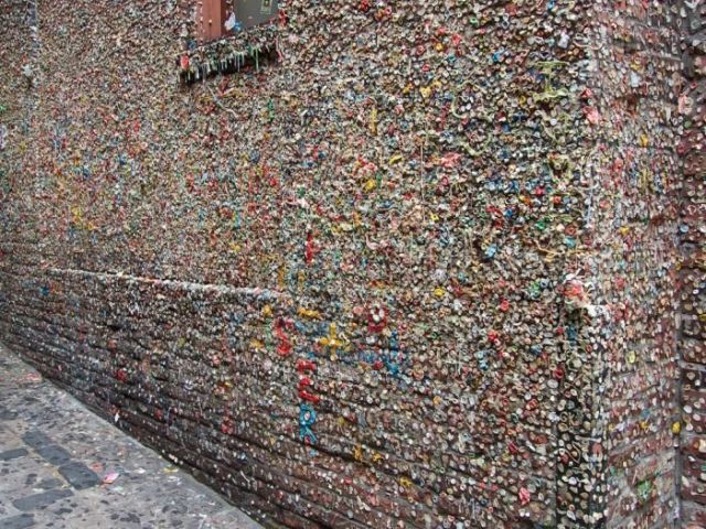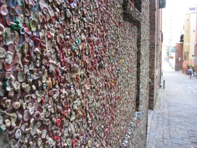 Сиэтл - это крупнейший город и морской порт на северо-западе США и в штате Вашингтон. Пожалуй, все узнают этот город благодаря его главной достопримечательности - футуристической башни Спейс-Нидл. Но все достопримечательности Сиэтла радуют глаз. Несмотря на это, данное местечко очень популярно как среди туристов, так местных. Речь идет о "Стене жевательной резинки", расположенной возле Пайк-Плейс-маркета. Вся кирпичная стена облеплена жвачками и выглядит это, честно сказать, неприятно. Но туристы всегда заглядывают в это место, чтобы оставить там свою жевательную резинку.