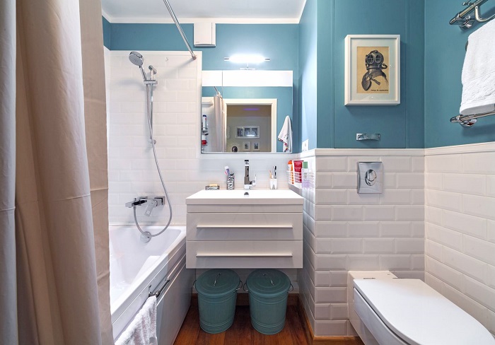 По причине того, что ванная комната не отличается большими габаритами, для ее отделки чаще всего используются светлые оттенки. Они визуально расширяют пространство, дарят ему свежесть, легкость, ассоциируются с чистотой и не раздражают. Если вы сделали акцент на светлую цветовую гамму, обращайте внимание, чтобы не было перебора, иначе санузел превратится в больничную палату. Также очень важно использовать при оформлении интерьера разные фактуры, теплое освещение и яркие акценты. Ими могут выступить полотенца, душевая штора, рама на зеркале, подставка под зубные щетки, флаконы с гелями, шампунями и так далее. Очень важно, чтобы акценты дополняли имеющуюся обстановку и гармонично вписывались в интерьер, а не шли в разрез с отделкой. И еще обязательно должна сохранятся общая задумка.