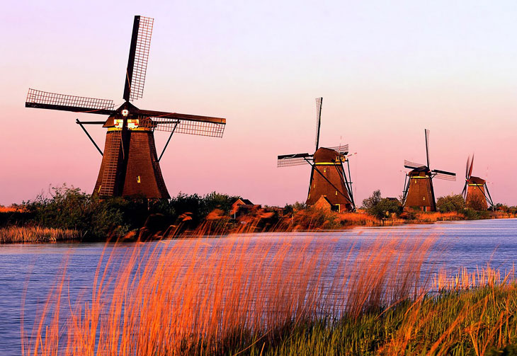 Одним из символов Голландии являются ветряные мельницы. Их можно часто встретить за поворотом дороги, поодиночке или небольшими группами. А можно просто приехать в деревню Киндердейк, где на сравнительно небольшой площади находится крупнейшее сосредоточение старинных ветряных мельниц в Нидерландах — 19 мельниц XVIII века.