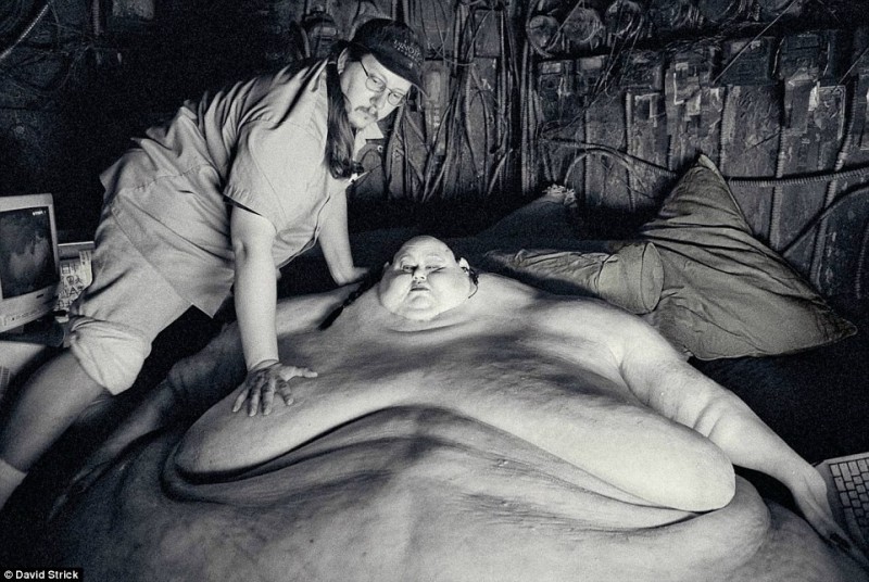 Гигантский вампир: специалист по спецэффектам разглаживает «кожу» вампира Перла во время съемок фильма «Блэйд» в 1998 году.
