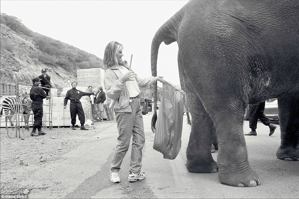 Дрессировщица слонов выполняет не очень гламурную работу — собирает навоз за животным во время съемки фильма «О, где же ты, брат?» в 1998 году.