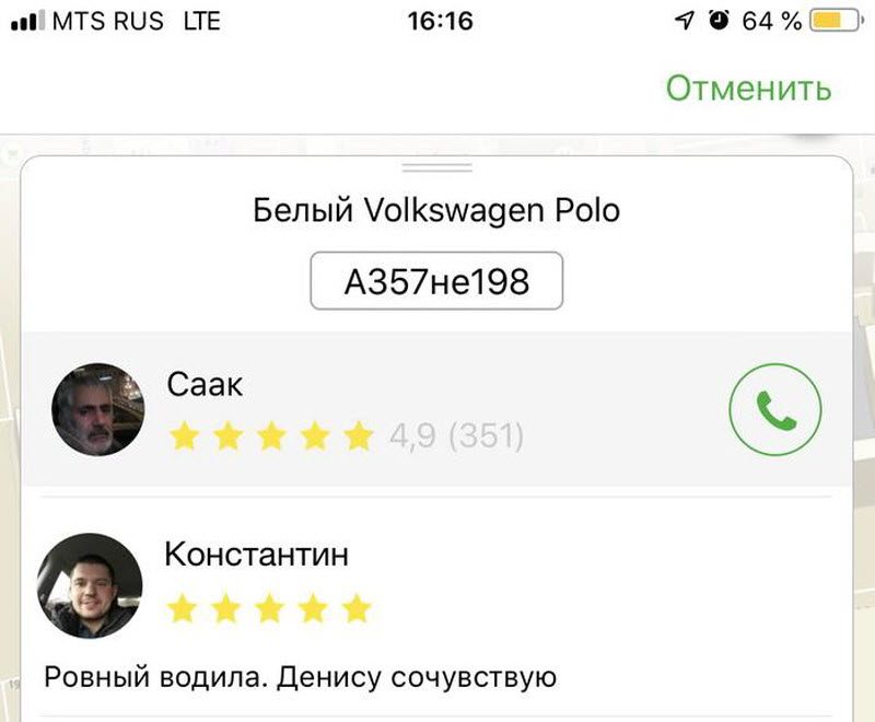 Неожиданный отзыв о водителе Яндекс.Такси 02/04/2020 12:50 Во время вызова таки вы не читаете отзывы о водителе? Зря. Там попадаются неожиданные оценки людей, днями перевозящих по городу пассажиров. Интересно, что там случилось у Дениса… Главная / Картинки -3 Admin 0 789