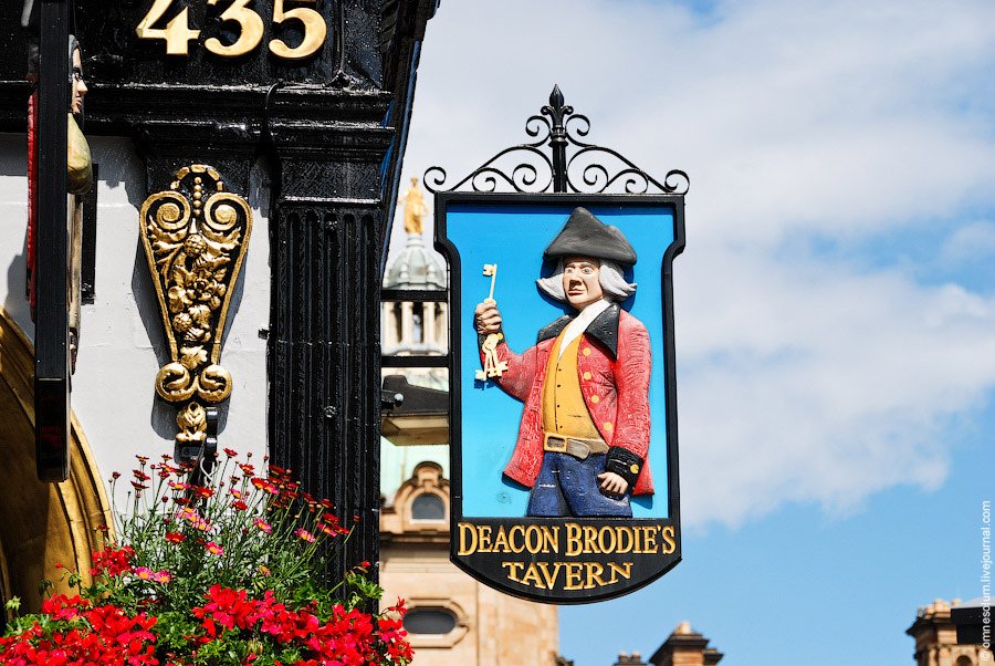 Известные убийцы и грабители тоже оставили свой след в названиях. Сплетни, которыми обменивались путники за кружечкой пива, создали воистину легендарные образы грабителей с большой дороги, таких как Дик Терпин или Дьякон Броди. На фото: Deacon Brodie's Tavern, Эдинбург: