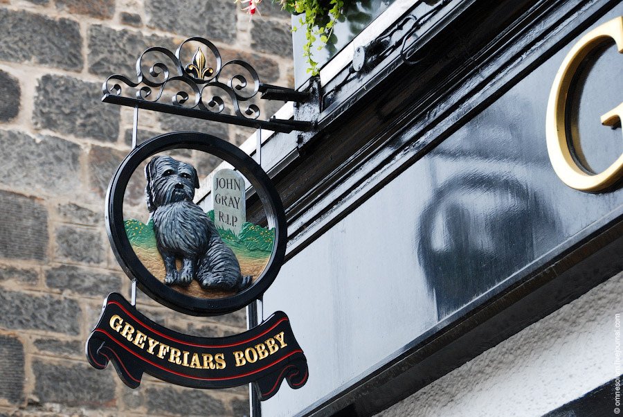 Вывески иногда повествуют о военных победах, национальных достижениях или же просто об интересных событиях местного масштаба. Например, один из пабов Эдинбурга назван в честь скай-терьера Бобби, четырнадцать лет охранявшего могилу своего хозяина на соседнем кладбище Грейфраерс. На фото: Greyfriars Bobby, Эдинбург: