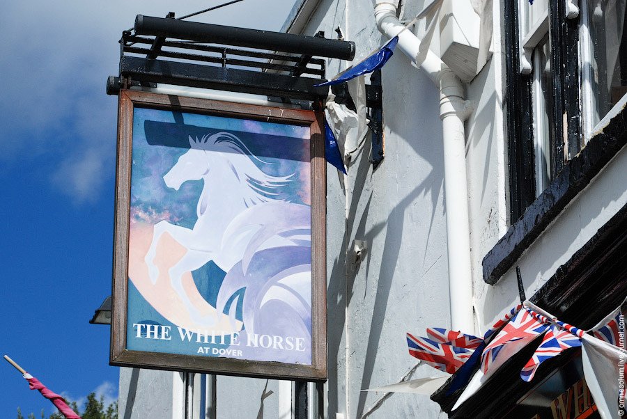 Животные и птицы — довольно частые гости на вывесках британских пабов. Гончие, лисы и утки как правило связаны с охотой, петухи — с петушиными боями, лошади — со скачками... А белая лошадь ещё и является символом графства Кент. На фото: The White Horse, Дувр: