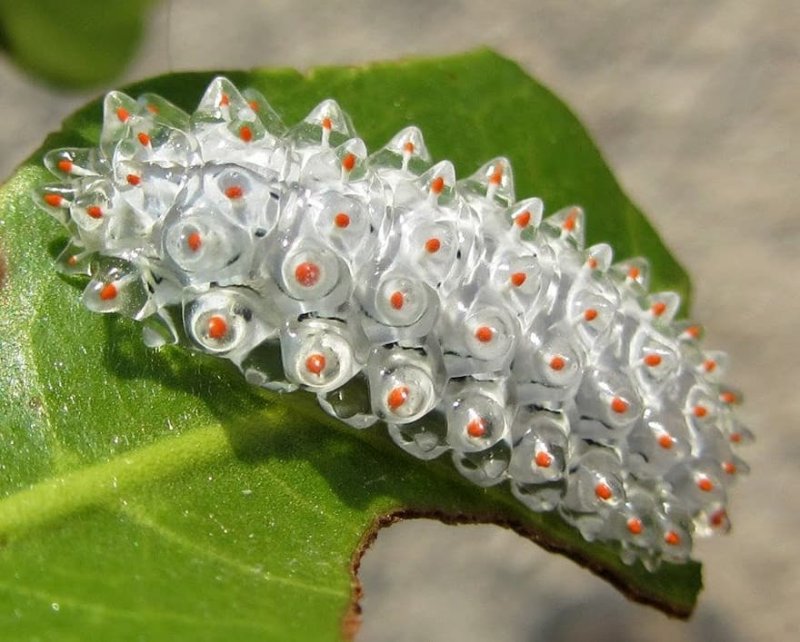 11. Гусеницы бабочек Dalceridae (около 2-3 см) благодаря своему необычному внешнему виду с желеподобными выростами напоминают драгоценный камень и именуются «жемчужными», «мармеладными», «кристальными»