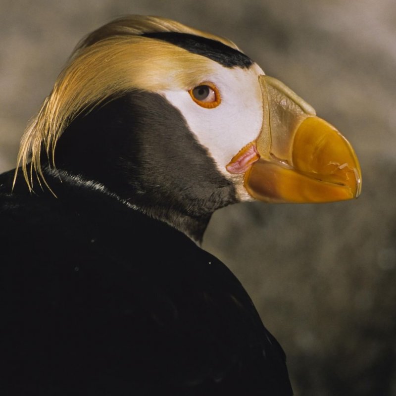 12. Топорик. У этой несуразной на вид птицы — внушительный импозантный образ средневекового воина. Массивный, сжатый с боков как топор, зеленовато-желтый с красным концом клюв, напоминающий страшную секиру