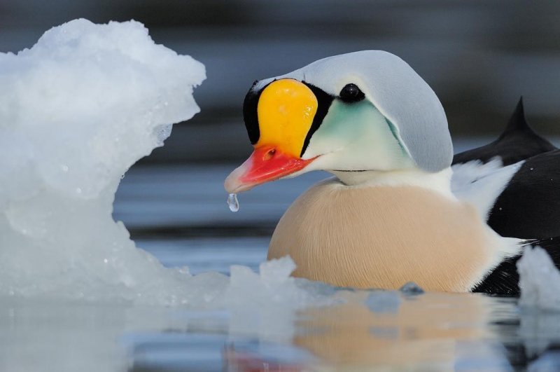 20. Гаага-гребенуушка — крупная морская утка, гнездится в прибрежной тундре вдоль арктического побережья Евразии и Северной Америки, на островах Северного Ледовитого океана. Остальную часть времени проводит в литоральной зоне моря, где добывает себе корм на дне