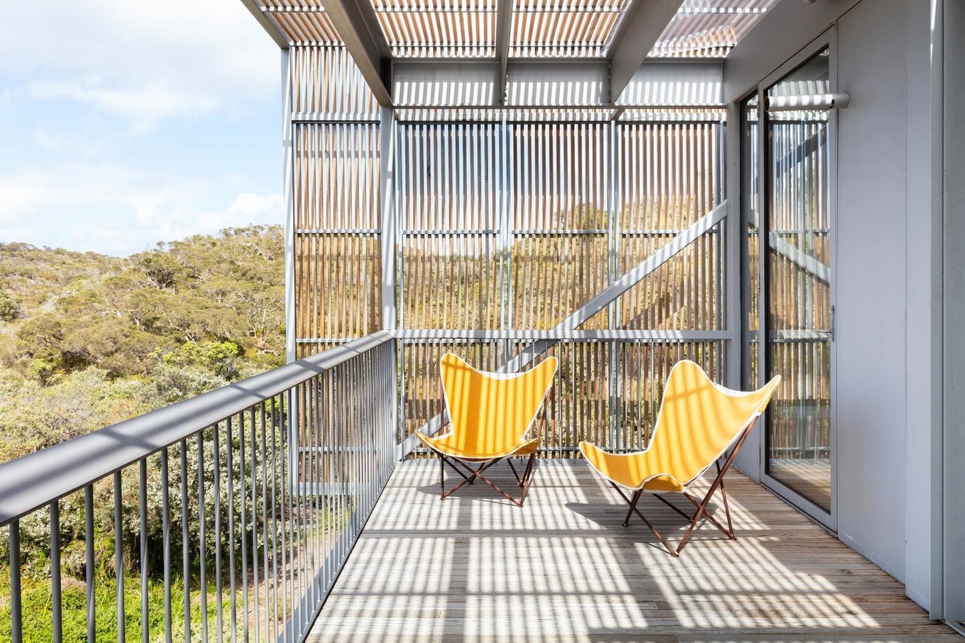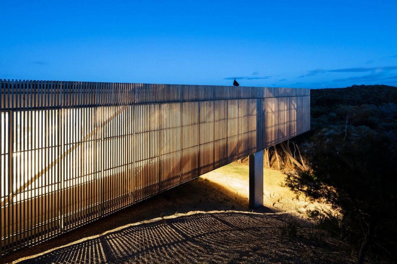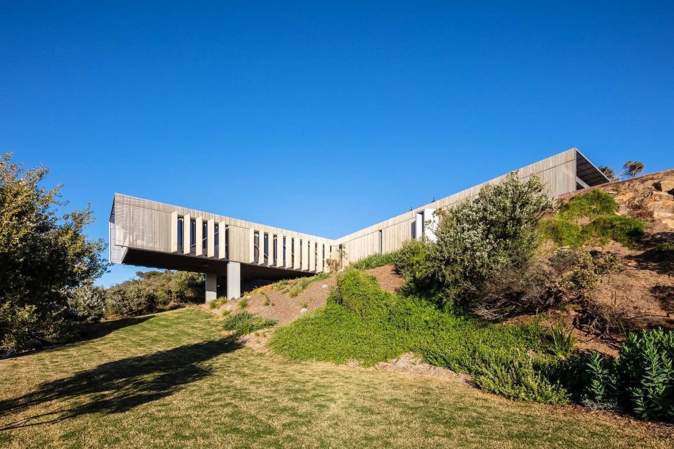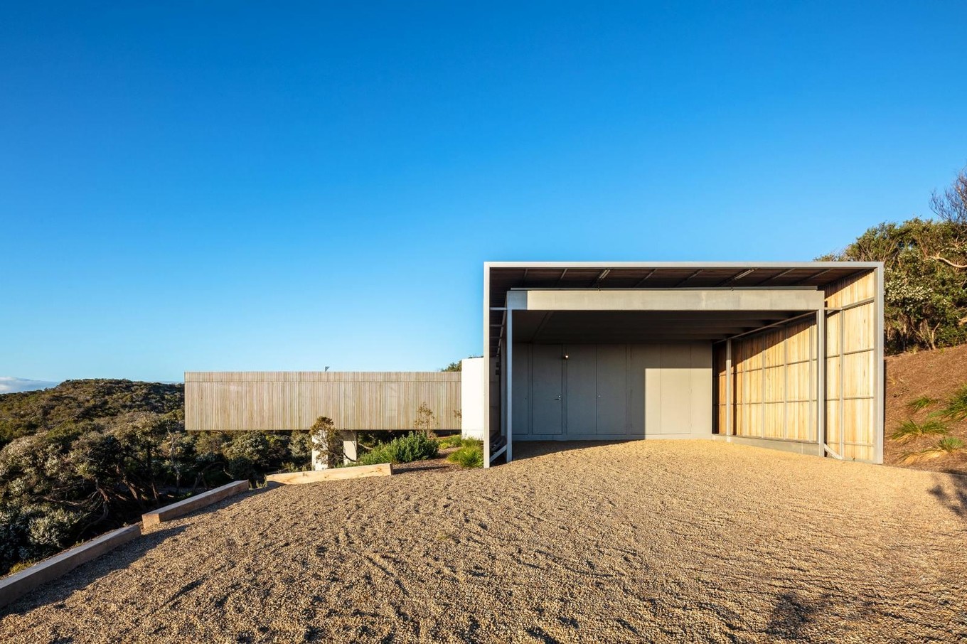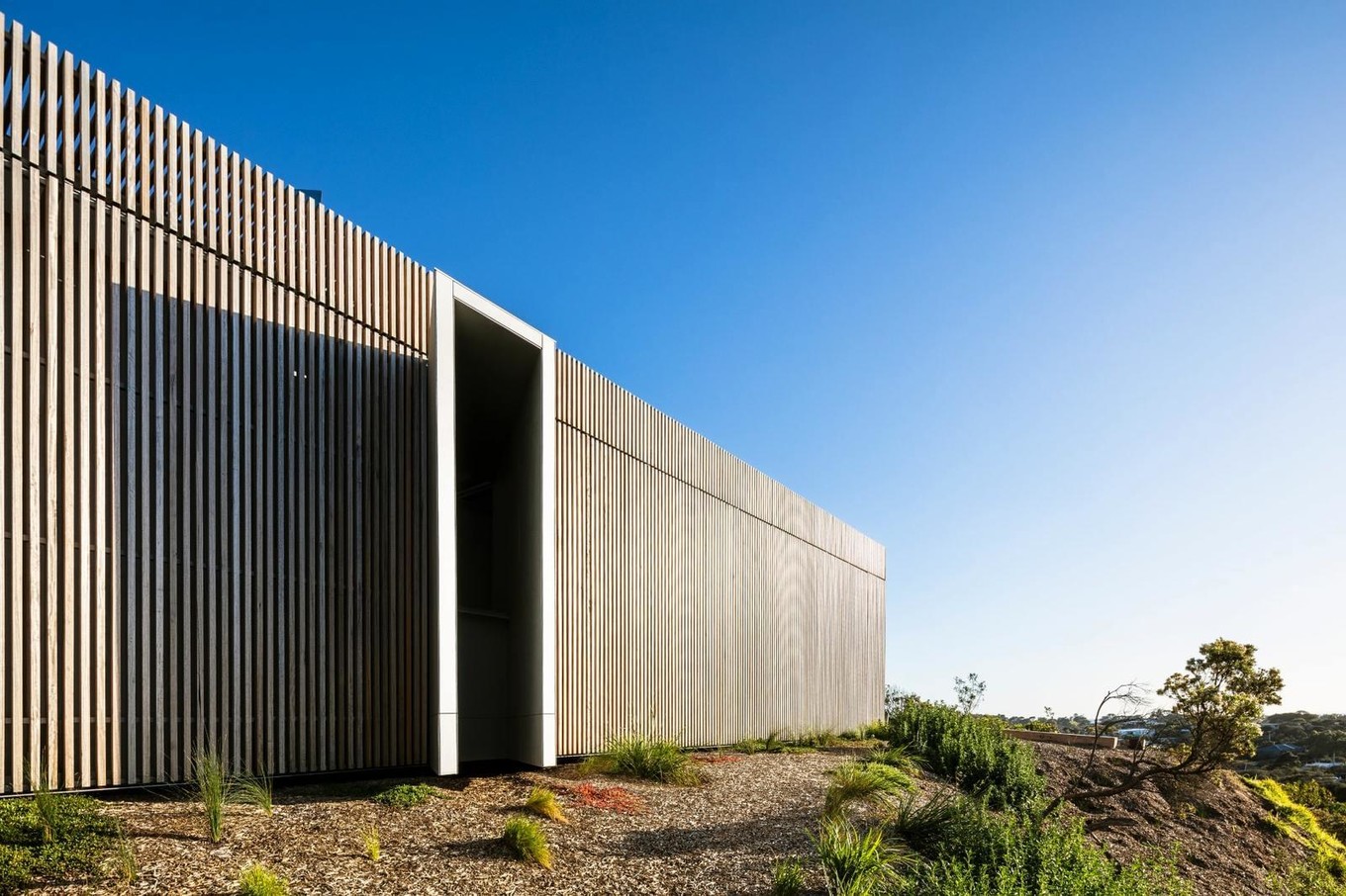 Среди крутых песчаных дюн на побережье полуострова Морнингтон в Австралии построили Г-образное здание, которое так гармонично вписалось в участок с изогнутым кустарником, будто было там всегда. Для внешней отделки фасада архитекторы выбрали деревянную облицовку, которая со временем будет соответствовать серому оттенку прибрежных чайных деревьев.