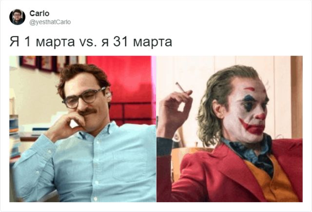 Согласитесь, что 2020 год задал нам жару. Пожары, землетрясения, пожары, кризисы, коронавирусы, карантины и этот список можно продолжать еще долго. А март выдался просто сумасшедшим. Но нельзя унывать и сдаваться. Пользователи Твиттера не падают духом и продолжают веселиться. Так появился новый флешмоб - "1 марта vs. 31 марта". В нем ребята показали, как их помотал март, при помощи двух фото. Давайте посмотрим.