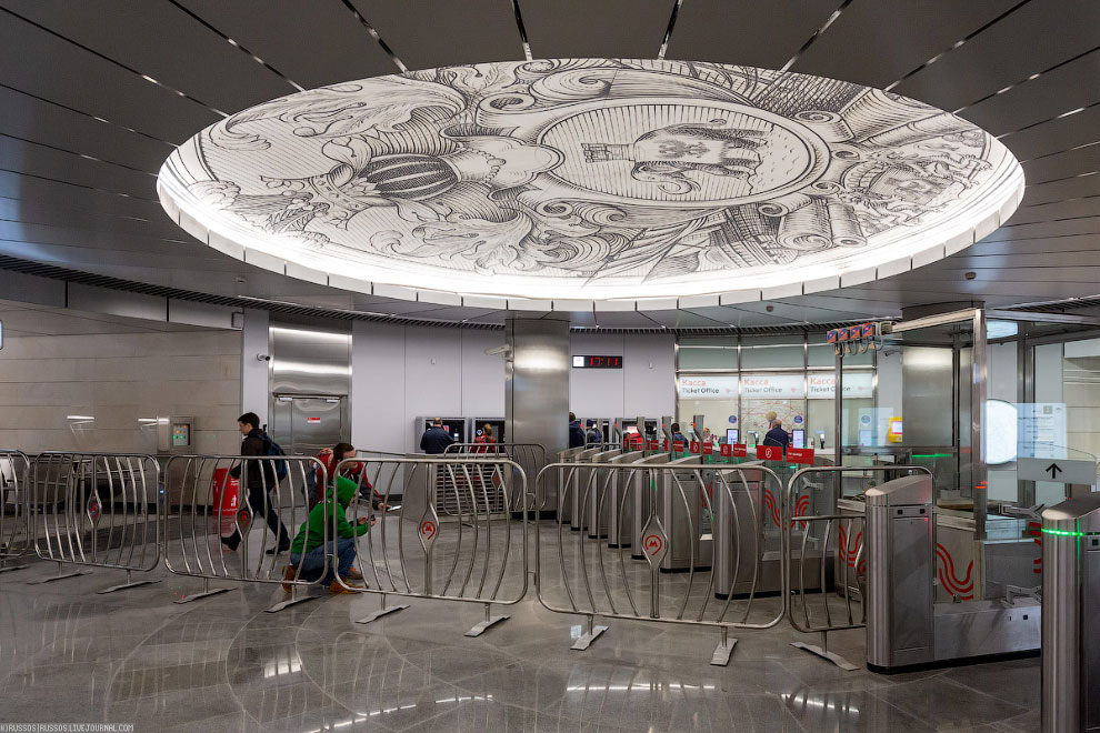Хотя можно сказать, что оформление получилось немного перпендикулярным и оно не гармонирует с росписью в вестибюле.