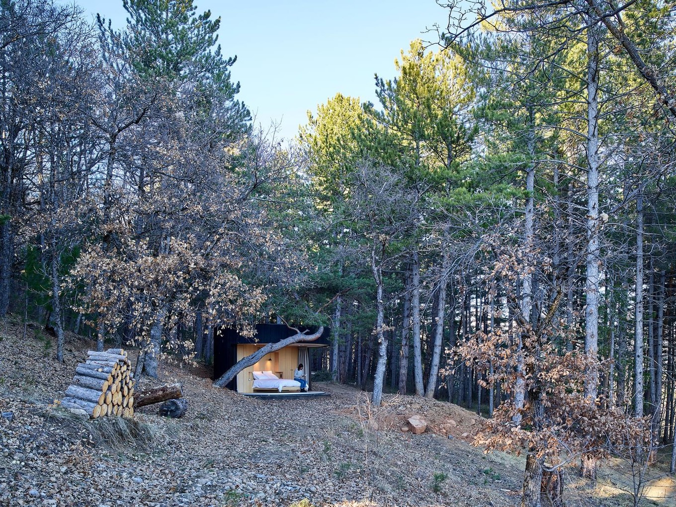 Мечта заказчика о собственном высококлассном гостиничном номере в окружении природы осуществилась. Расположенный на высоте 1 000 метров над уровнем моря, в самом сердце соснового и дубового леса, LumiPod предлагает панорамный вид на горы и гармонично вписывается в пейзаж. Кажется, что он является частью естественного пейзажа.