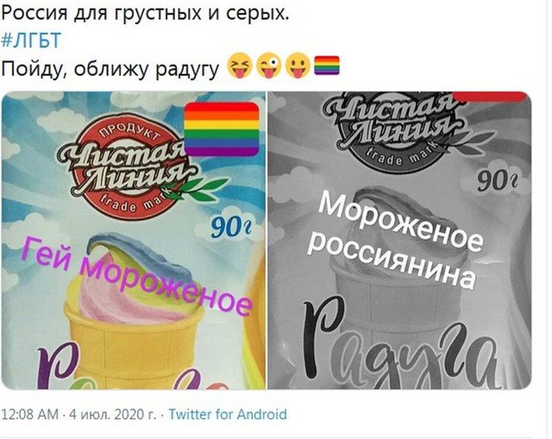 В Сети идет большая дискуссия о недавнем предложении Екатерины Лаховой отменить радугу в мороженом. Пользователи пошли дальше и нашли еще несколько вещей, где есть радуга (читай – пропаганда лгбт-сообщества), которые стоит “обесцветить”.