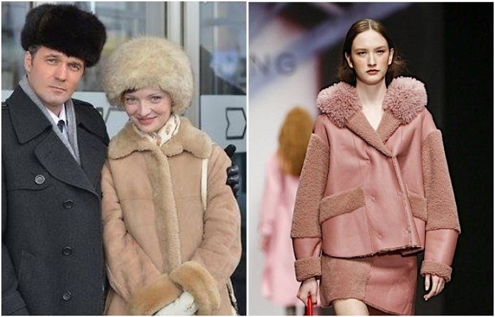 Куртки и пальто из натуральной либо искусственной овчины были поистине незаменимой вещью во время суровых российских зим. Их носили и мужчины, и женщины, комбинирую с вышеупомянутыми шапками-ушанками. Получался очень теплый, стильный и уютный образ.