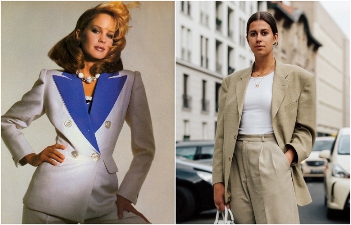 Любовь к силуэтам с широкими плечами появилась у советских женщин еще в 80-х годах, а потом плавно перекочевала в 90-е. Нынешняя мода также не обошла их стороной и предложила девушкам добавить такой пиджак в свой гардероб. Фасон может быть как приталенным, так и на пару размеров больше, в стиле оверсайз. Первые модели комбинируют с шортами-бермудами, брюками и джинсами-клеш, юбкой-карандаш. А вторые – с широкими штанами, длинными платьями из шифона или шелка, мини-юбкой. Пиджаки-оверсайз обычно просто накидывают поверх наряда и оставляют расстегнутыми.