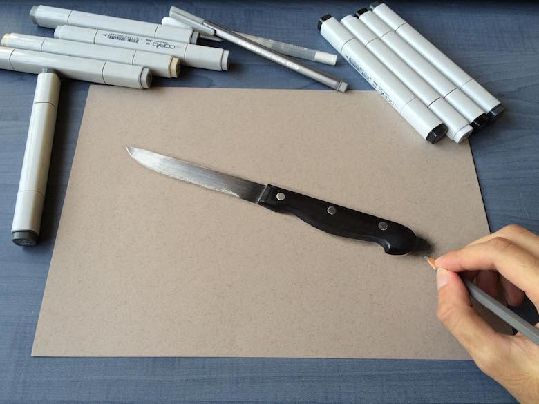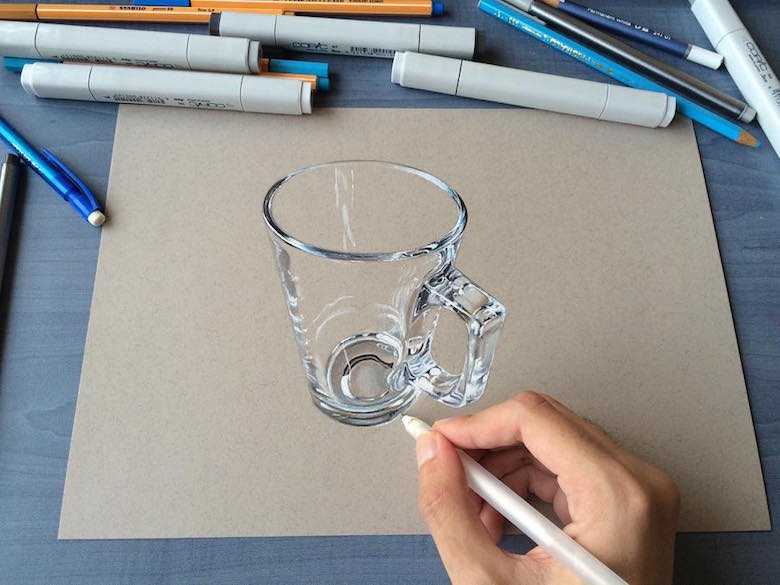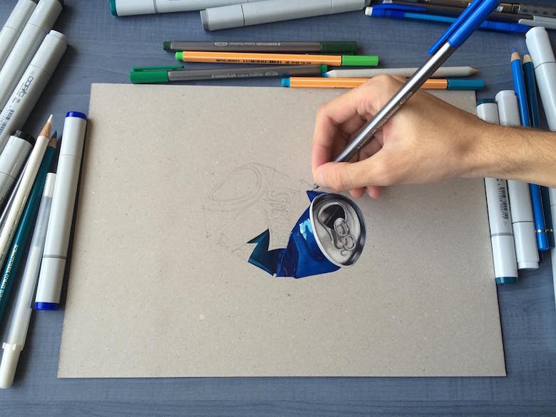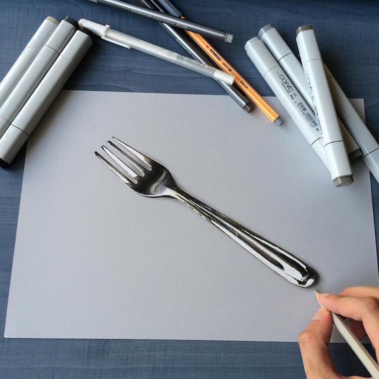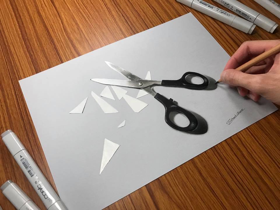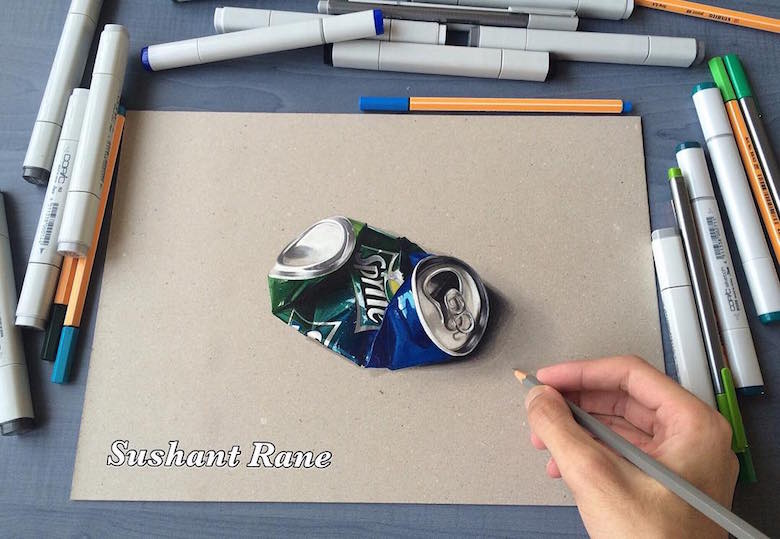 20-летний индиец Сушант Сушил Ране рисует на бумаге совершенно обыденные вещи: лампочки, телефоны, банки из-под напитков, столовые приборы и другое тому подобное. Но они настолько реалистичны, что могут ввести зрителя в заблуждение и создать впечатление объемного объекта.