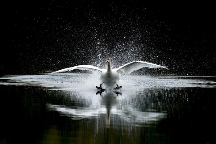 Лебедь зашел на посадку, Санбери, Англия, 18 октября 2020. (Фото Alan Crowhurst):