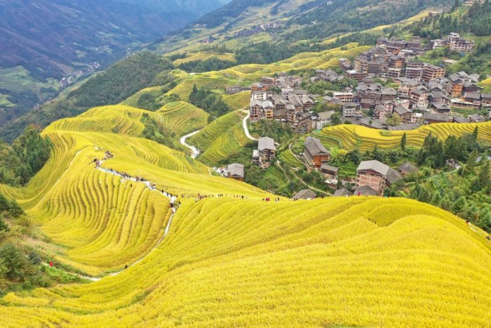 Осенние рисовые террасы в Гуйлине, Гуанси. (Фото Costfoto):