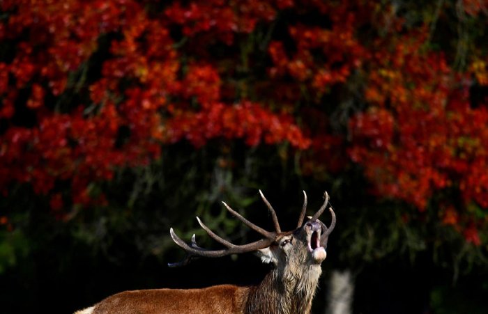 Олени во время гона в Ричмонд-парке, Лондон. (Фото Toby Melville):