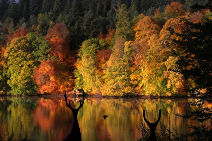 Отражения осеннего леса в Шотландии. (Фото Russell Cheyne):