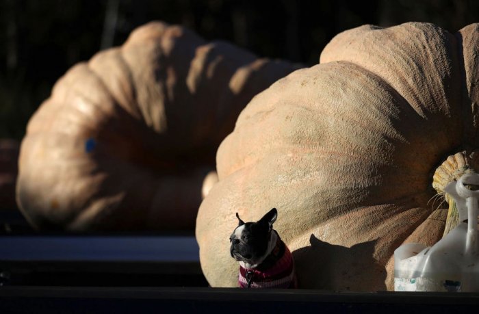 Чемпионат мира по самым большим тыквам в Калифорнии. Вес победной тыквы — 1066 кг! (Фото Justin Sullivan):