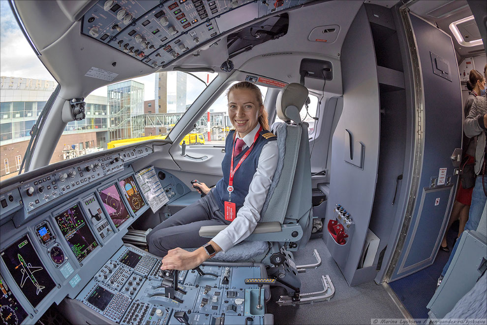 Любой самолёт начинается с кабины. Здесь нас встречает очаровательный второй пилот Виктория.