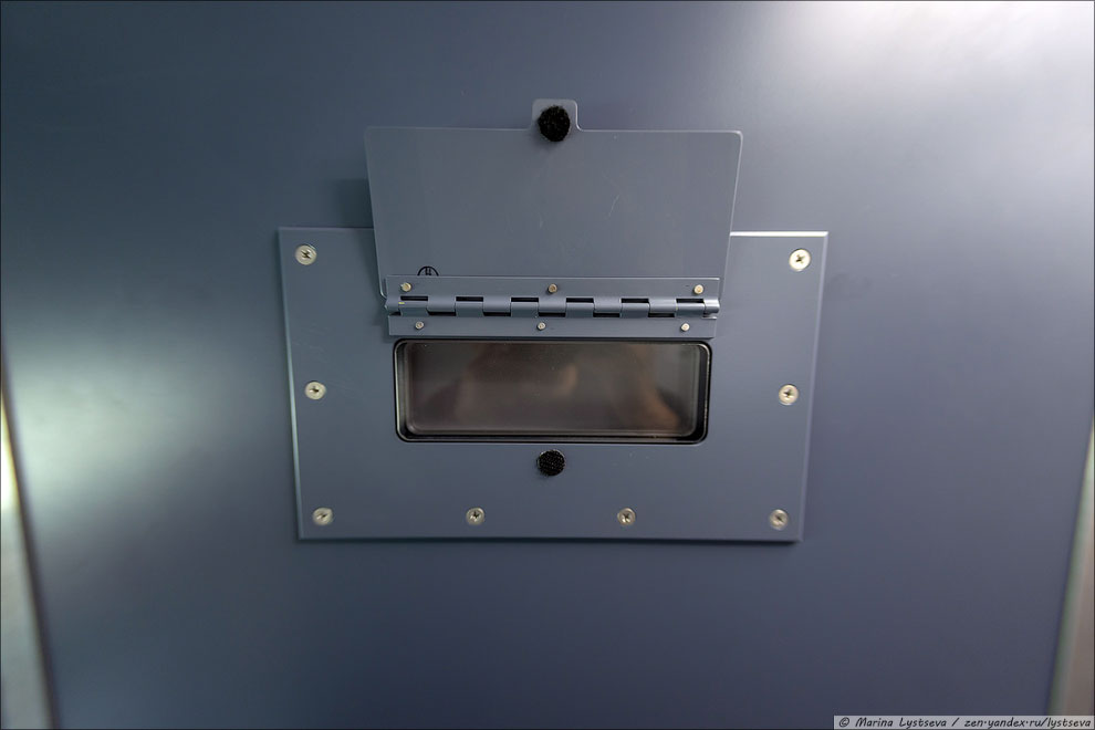В двери кабины есть глазок для подглядывания за бортпроводниками.