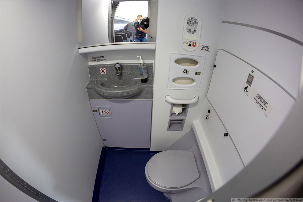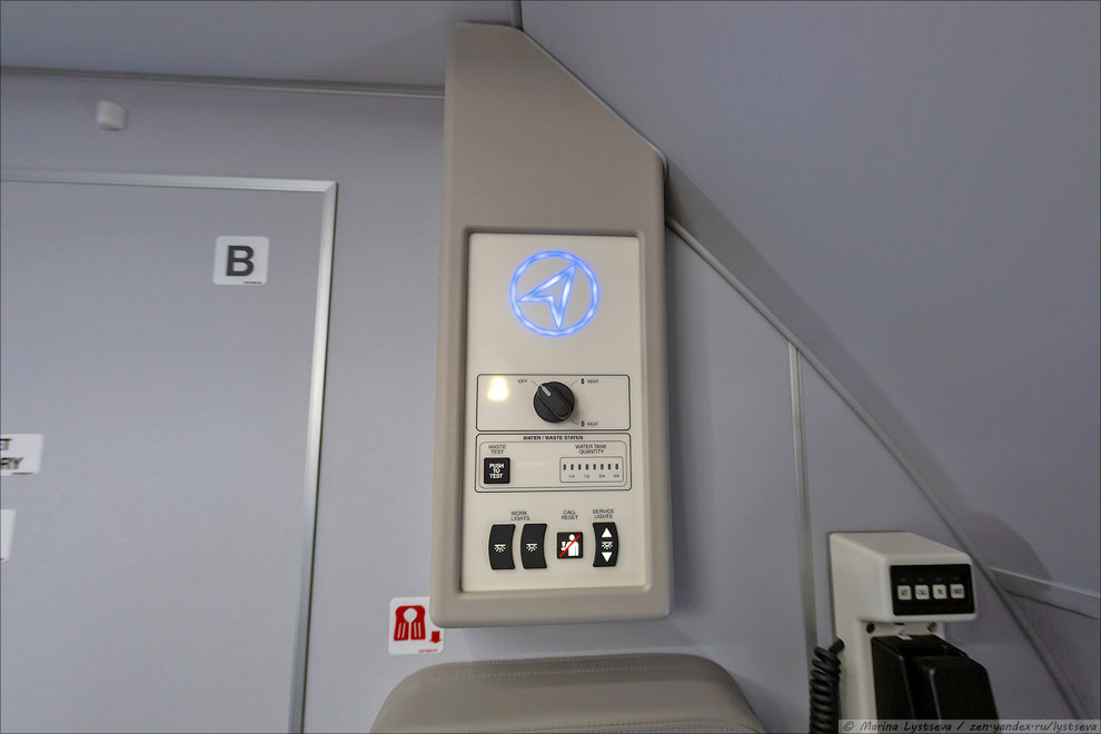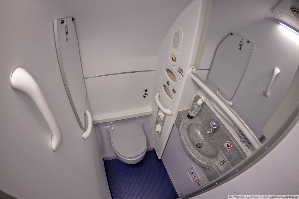 В салоне два туалета, этот находится сразу за кабиной пилотов в носовой части.