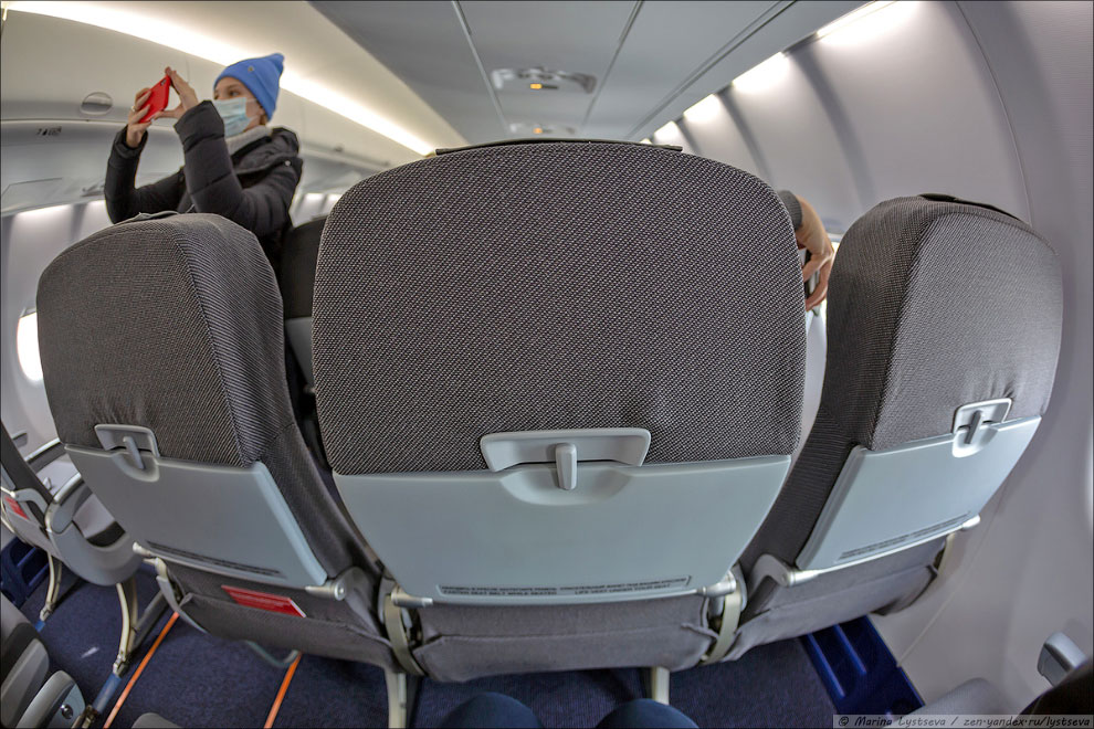 А ещё в Суперджете хороший шаг кресел, в отличие от того же А320, на котором мы летели в Екат и обратно (колени упираются адово).
