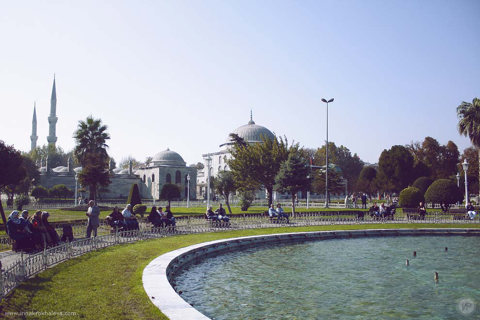 Вид на мечеть Султанахмет или Голубую мечеть. Она находится напротив Айя Софии.