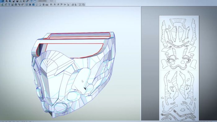 Замоделил маску в 3d и сделал на основе модели бумажную развёртку, которую кстати, можно скачать в описании под видео на YouTube. Распечатал и склеил из плотной бумаги(чертёжная 200 г\м2), а потом промазал эпоксидной смолой что бы укрепить.