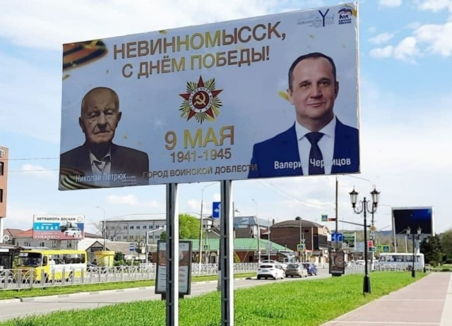 В Невинномысске перед днем Победы повесили 50 баннеров, на которых изображены ветераны с влиятельными людьми города.