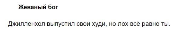 Голливудский актер Джейк Джилленхол выпустил толстовку с надписью, которая очень рассмешила русских поклонников. Для остальных это просто аббревиатура, но русскоязычным людям эти обидные три буквы очень знакомы. И судя по всему, Джейк благодаря своим русским поклонникам, пополнил свой словарный запас.