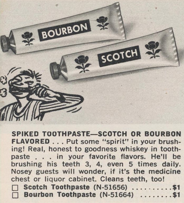 «Шеф, это не то, что вы подумали! Я просто зубы чистил!» Производители зубной пасты предлагают наслаждаться гигиеной полости рта вместо того, чтобы противиться ей. Выбирай: скотч или бурбон.
