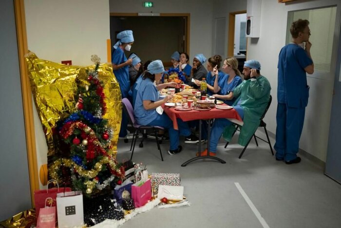 Врачи, кстати, тоже празднуют Рождество на работе. Фото рождественского обеда в одной из «Ковидных» клиник Франции. Благодаря этим ребятам, мир может праздновать вне своих квартир!
