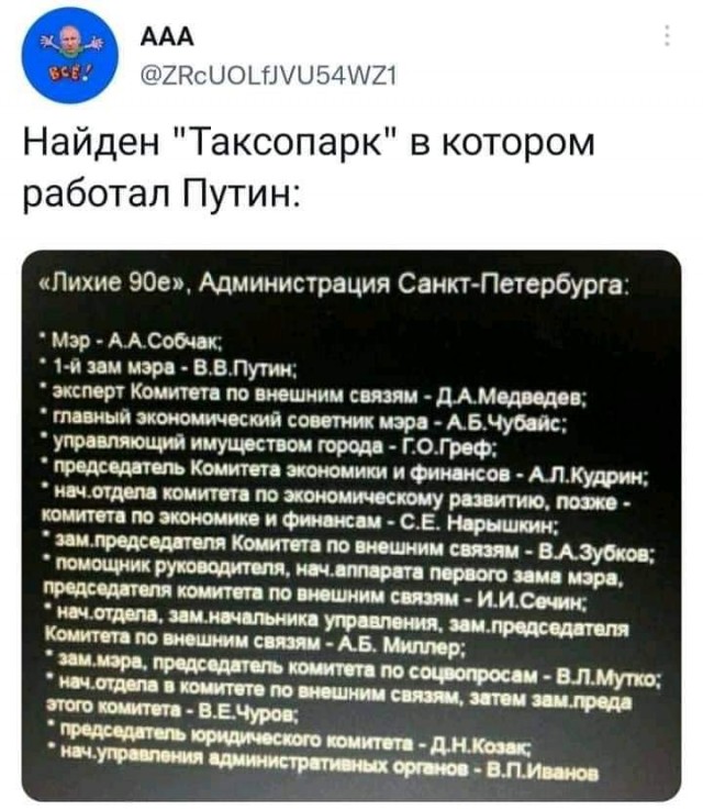 Лихие 90-ые, администрация Санкт-Петербурга 08/01/2022 20:36 Нехило так поднялись простые ребята, труженики мэрии Главная / Картинки +1 Admin 6 673
