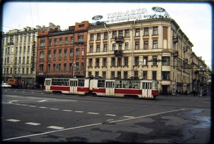 А на углу Лиговского и Невского повесили здоровенную рекламу автосалона «Форд» на улице Коммуны.