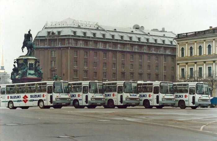 «Икарусы», с рекламой «Сузуки» на Исаакиевской площади.