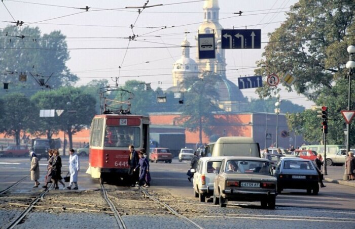 Большая Морская улица. Машин в 1993 было еще не слишком много и все парковались как попало.