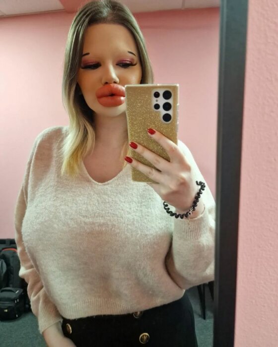 Андреа Иванова из города София в Болгарии начала менять свою внешность еще в 2018 году. Чтобы добиться полного сходства с куклами Bratz, девушка начала вводить филлеры в губы, подбородок и линию челюсти. Недавно она поделилась с подписчиками информацией, что потратила около полутора тысяч долларов на «скульптурный» подбородок и теперь надеется поставить новый рекорд. Это достижение она намерена добавить к самопровозглашенному титулу владелицы самых больших губ в мире.