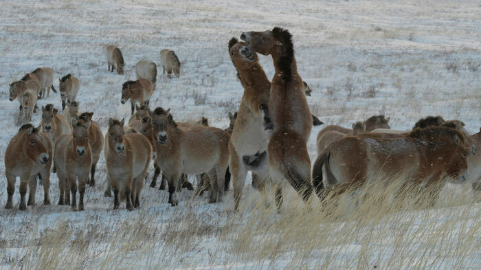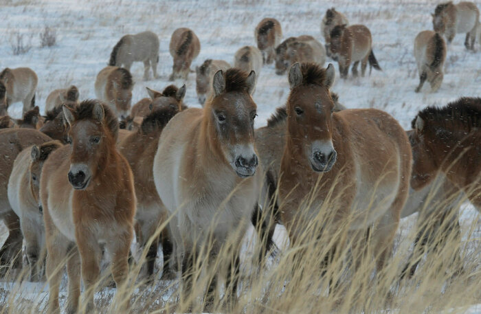 Народ в комментариях беспокоится, как лошади Пржевальского переносят столь суровые зимы, а особенно знаменитые оренбургские бураны. Беспокоится не надо. Этот вид “спроектирован” под суровый климат северных степей и пережил эпохи похолоданий.