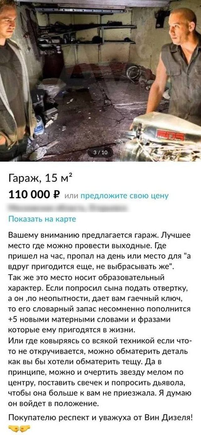 Сегодня в интернете можно купить и продать все что душе угодно. Но не факт, что ваш товар привлечет внимание. Как же быть? Правильно. Без крутой подачи никакого результата не будет. Нужно завоевать внимание потенциального покупателя и попасть прямо ему в сердечко. Этот гений интернет-продаж из Московской области показал, как надо правильно вести дела. Ну и как тут не купить у него гараж?