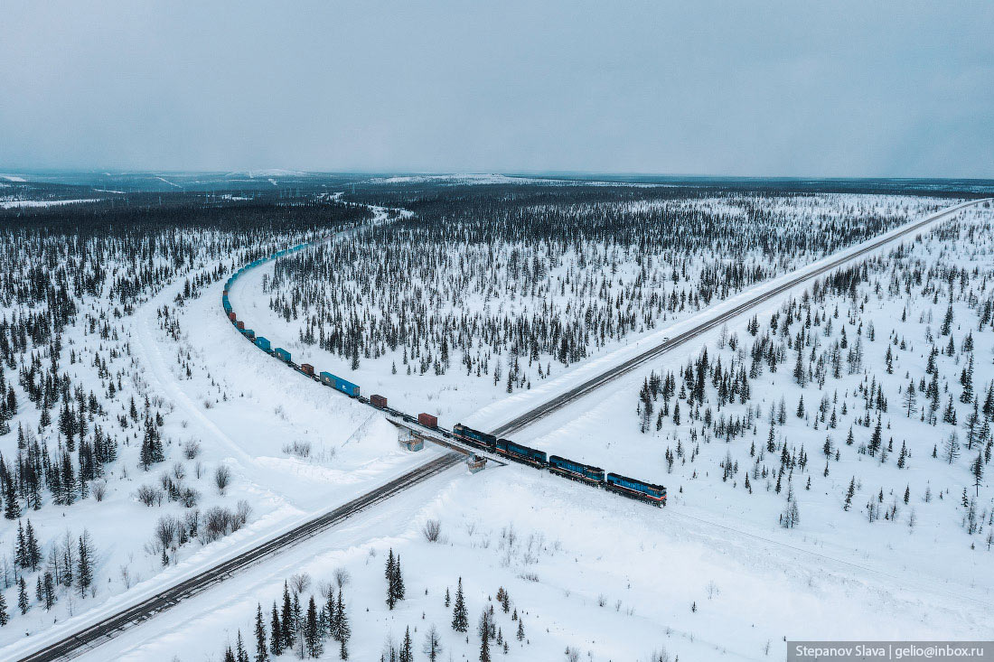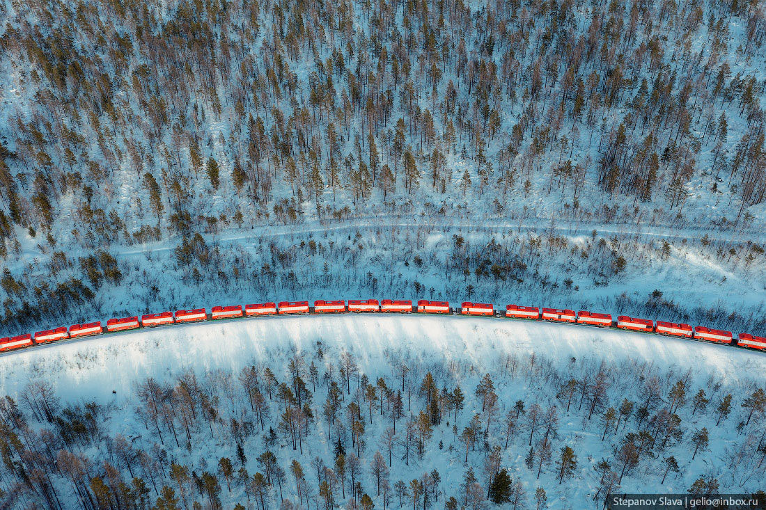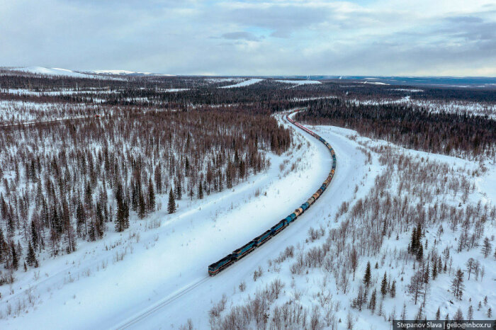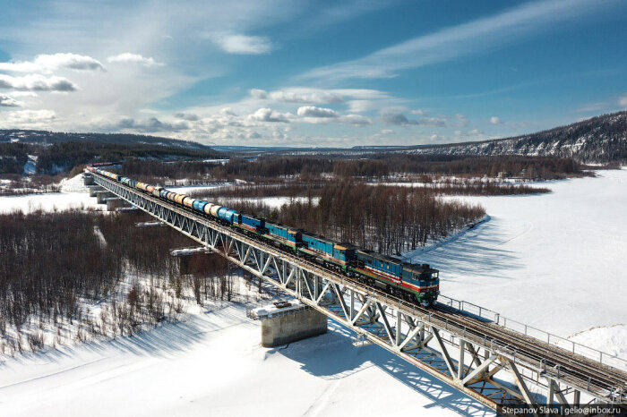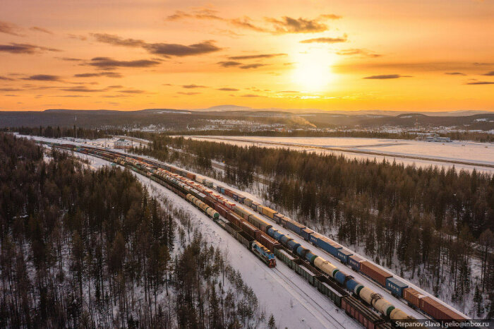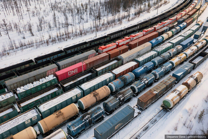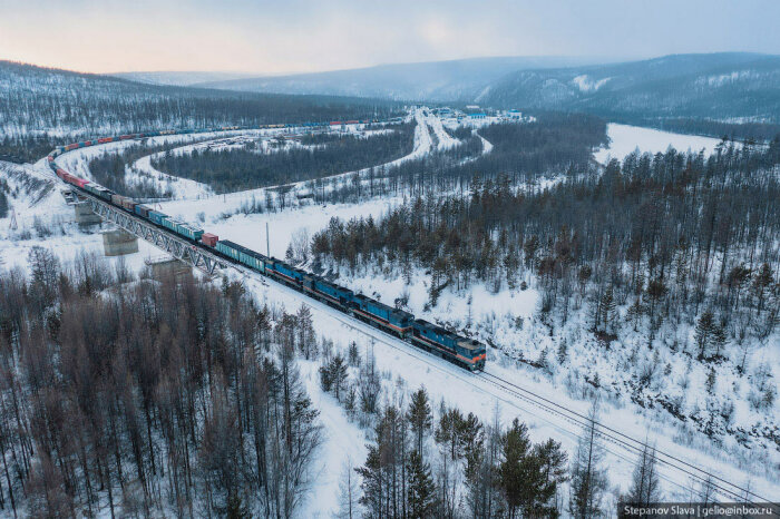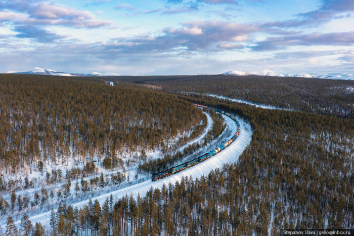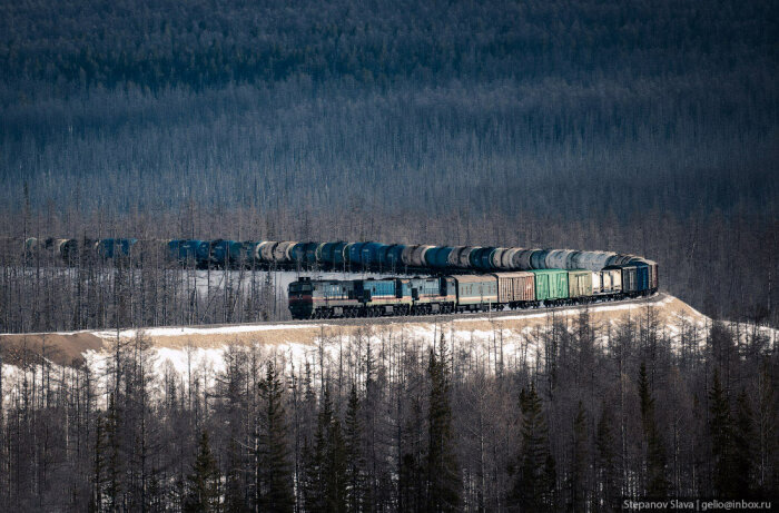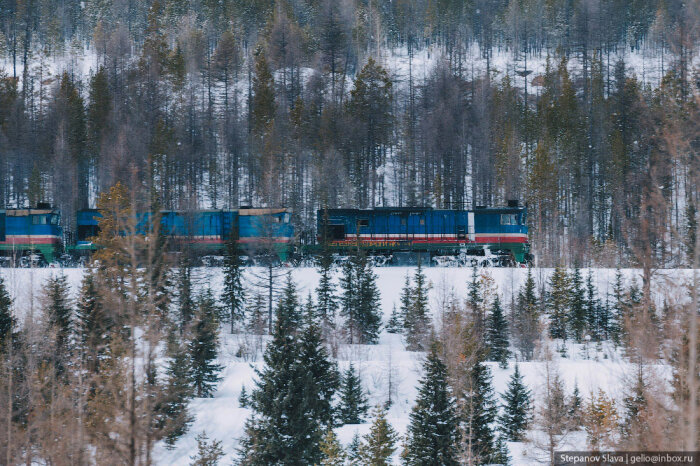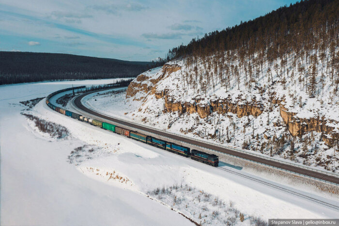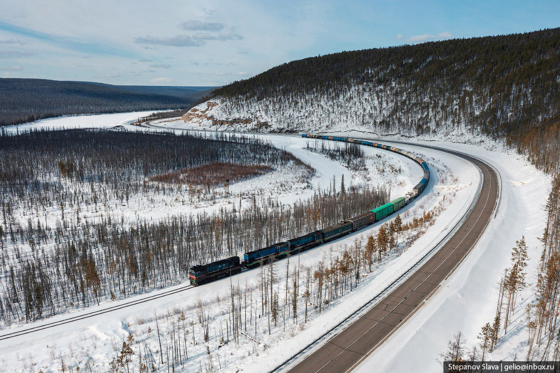 С транспортом в Якутии сложно. Во-первых, это самый большой регион России, да и в мире стоит на первом месте среди других административно-территориальных единиц. Площадь Якутии более 3 млн км². На такой огромной территории поместилась бы Индия или 12 Великобританий. Во-вторых, большая часть местности — горы и плоскогорья, только 1/3 площади занимают низменности и равнины. В регионе около 1,5 млн ручьёв, озёр и рек. Весной водоёмы выходят из берегов, разливаются. В течение года разница температур достигает 75° — от -50…-65°C зимой до +15…+25°C. Летом крупные реки используются для судоходства, когда наступают морозы — прокладывают зимники. В Якутии развита и авиация, но доставлять грузы самолётами слишком дорого. Идеальный транспорт для таких условий — железнодорожный.