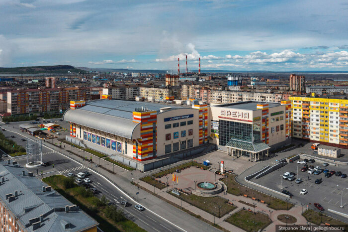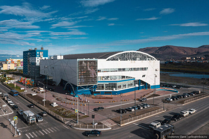 23. Спортивно-развлекательный комплекс «Арена-Норильск» на площади Металлургов. В спортивной части — бассейн, аквапарк и фитнес-клуб, в торгово-развлекательной — несколько десятков магазинов, рестораны и кафе.