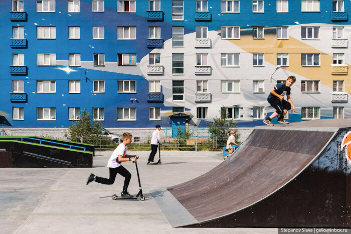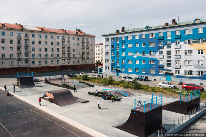 53. Детская площадка и скейт-парк на улице Михаила Кравца в Талнахе.