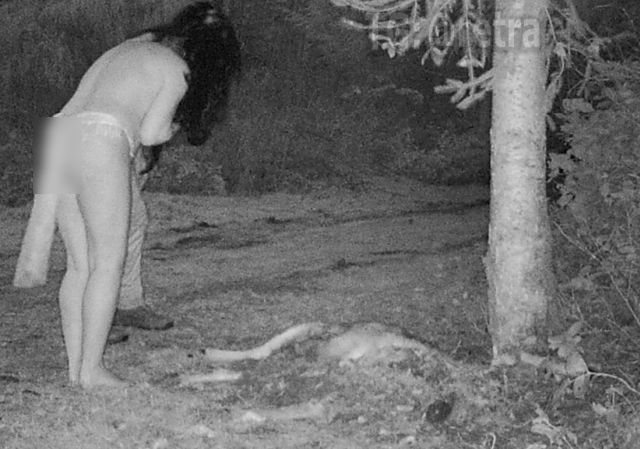 Нет это не новая часть "Ведьмы из Блэр". Довольно жуткая история приключилась с канадкой Коринеей Стэнхоуп. Однажды она каталась на своей лошади и заметила тело погибшего оленя в своем саду. Она решила установить камеру, чтобы попробовать запечатлеть хищников, которые придут полакомиться мясом животного. Падальщики в итоге действительно пришли. Но это оказались не дикие звери, пишет Thaiger.